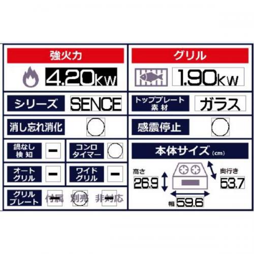 ●ガス消費量 :左/右コンロ4.20kW・後コンロ1.27kW・グリル1.85kW