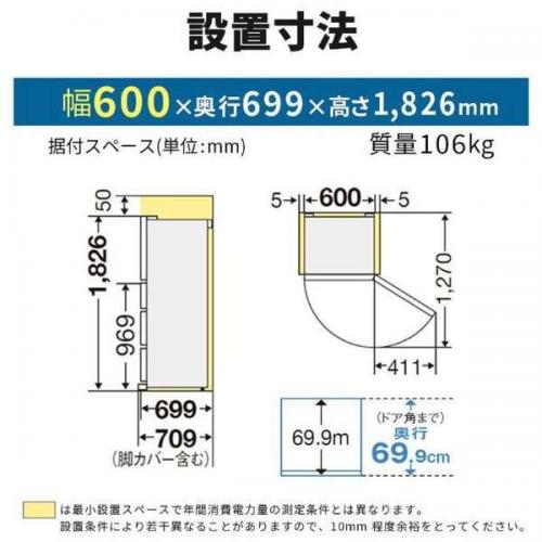 ●寸法:W60.0×H182.6×D69.9cm(脚カバー・ハンドル除く)