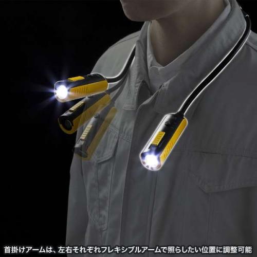 ●首掛けアームは、左右それぞれフレキシブルアームで照らしたい位置に調整できます。