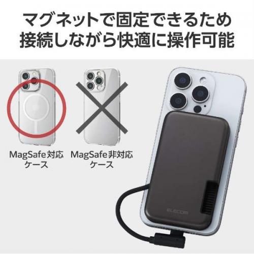 ●iPhone背面のマグネットに貼り付くため、SSD本体やコードがぶら下がった状態になりません。コードもゆとりがある設計で、接続しながら快適な操作が可能です。