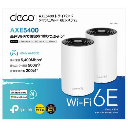 ティーピーリンク TP-Link Wi-Fiルーター 2402+2402+574Mbps Deco XE75(2パック) DECOXE752P