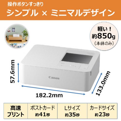 ●主な付属品:コンパクトパワーアダプター CA-CP300 B、ACケーブル、ペーパーカセット(ポストカード/Lサイズ兼用)、Lサイズアダプター、ペーパーカセット(カードサイズ用)、使用説明書、保証書