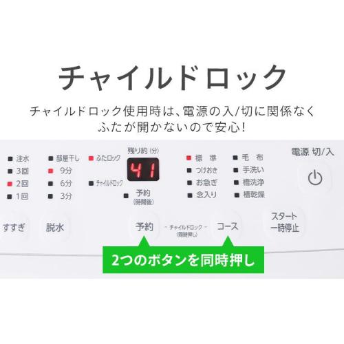 2〜24時間後までを1時間ごとに設定できる予約タイマー機能付きで、ライフスタイルに合わせた洗濯ができる。