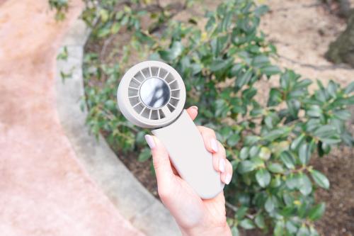 冷却プレートによる冷感とファンの風を同時に感じることで、真夏でも素早くクールダウンができる2WAY小型ファン。ボタンひとつで3段階の風量調節ができます。手持ちはもちろん、折り畳むことで自立するので、オフィスや自宅で卓上ファンとして活用することも。首の角度をなめらかに傾けられるので、お好みの風向きに調節いただけます。手のひらに馴染むラウンドボディで使いやすさにこだわった、暑い季節にひとつは持っておきたいマストアイテムです。