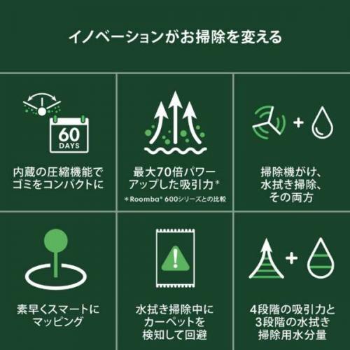 70倍強力になった吸引力と2倍にパワーアップした拭き取り力ですっきりキレイ。