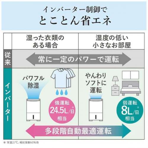●除湿能力:[50Hz]定格24.5L/日、[60Hz]定格24.5L/日