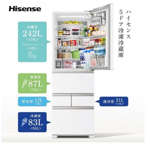 ハイセンス Hisense 冷蔵庫 450L 5ドア 右開き ブラッシュドメタルホワイト HR-DCH450KW(大型)