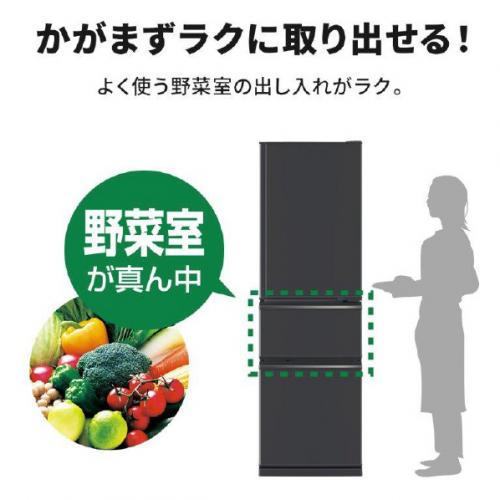 三菱 MITSUBISHI 冷蔵庫 300L 3ドア 右開き マットチャコール MR-CX30M-H(大型)