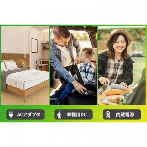 家庭用ACアダプター・車載用DC12Vアダプター・内蔵充電式バッテリーの3電源に対応。