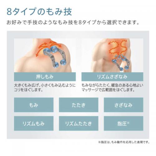 ・やわらかい独自のもみ玉を採用することにより体にフィットし、しっかりと揉みこむ4つ玉メカユニットを搭載。またロングストロークフレームを採用することにより、首からお尻まで多様なお疲れニーズに応えるマッサージ性能を搭載。