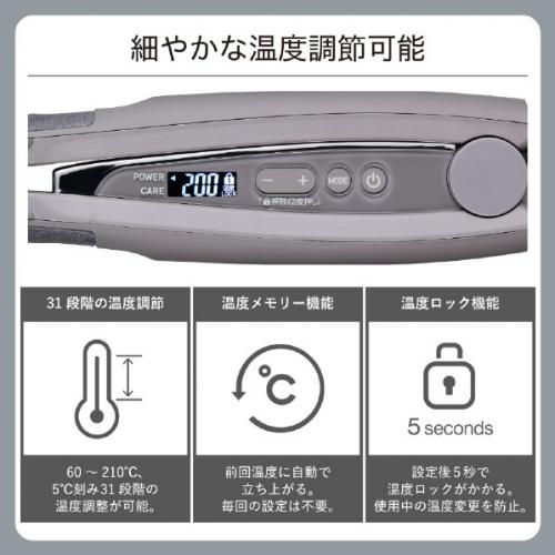 ●温度幅60〜210℃の間で、5℃刻み31段階の細やかな温度調節が可能。髪質やダメージ状態に合わせて最適な温度を選べます。