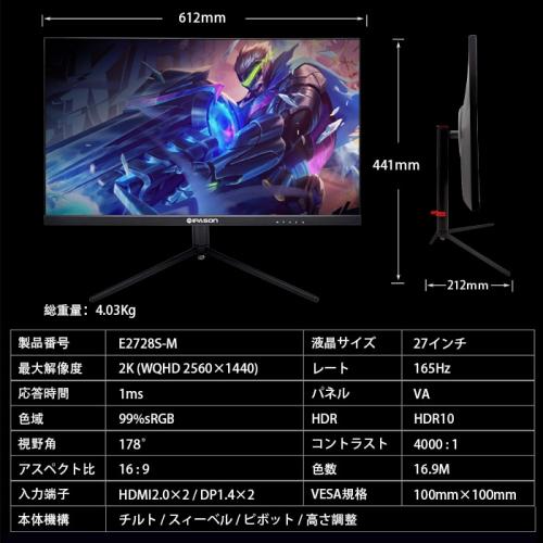 な選択です。このモニターは、鮮明なWQHD解像度(2560×1440)を誇り、細部