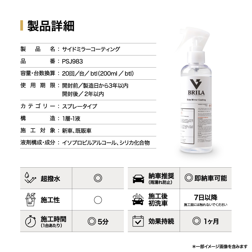 サイドミラーコート サイドミラー/リアカメラ 超撥水コート 安全性 洗車用品 耐久1ヵ月