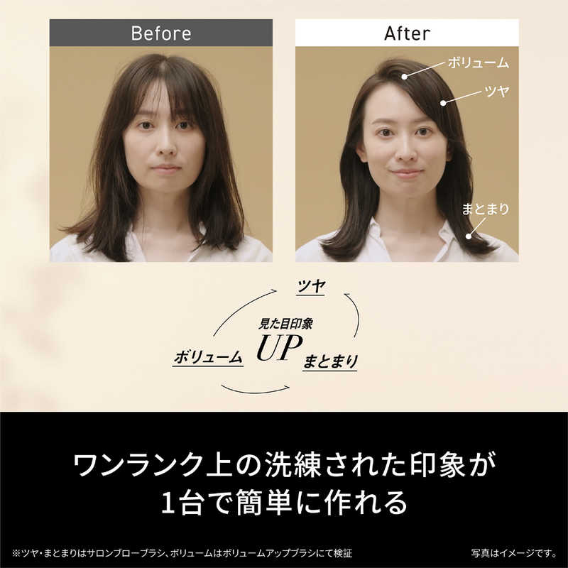 ●美容室発想のサロンブローブラシでつややかにまとまる髪へ。髪をはさむと、内側と外側の両方から温風でスタイリング。毛先までしっかりとらえてまとまる髪へ。