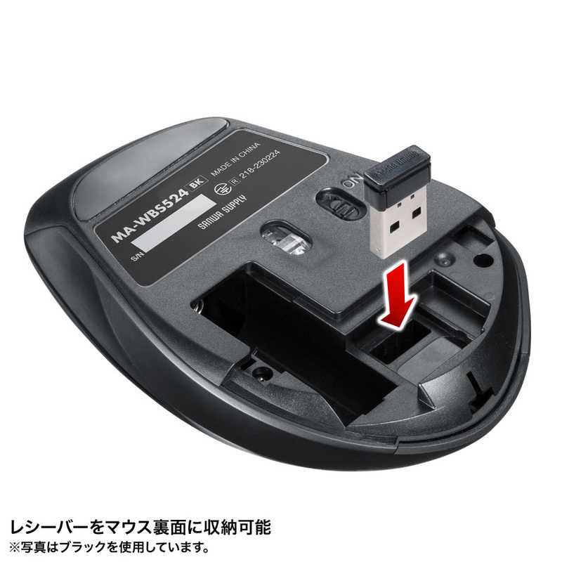 ●レシーバーはマウス本体裏面に差し込むだけの簡単収納です。