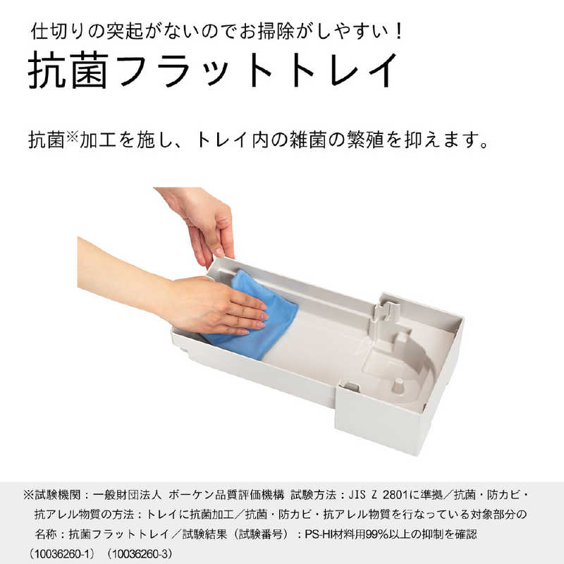 ・抗菌フラットトレイ 仕切りの突起をなくしお手入れがさらに簡単になりました。