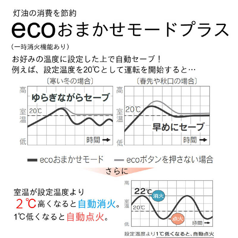 灯油の残量を、細かく8段階でお知らせ。 急な油切れの前に、余裕をもって給油できます。