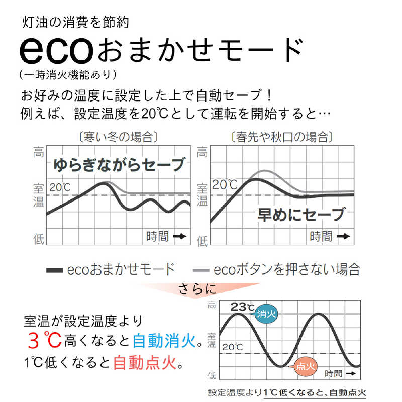 ?設定温度より3℃高くなると自動消火し、設定温度より1℃低くなると自動点火。快適な温度に自動で保ちます。