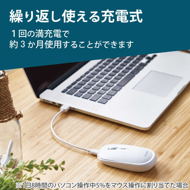 想定電池使用期間:約111日 ※1日8時間のパソコン操作中5%をマウス操作に割り当てた場合