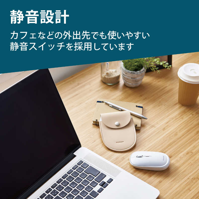 クリック音が静かなため、会議中のパソコン操作や、早朝・夜間の作業など、クリック音が気になるシーンでも安心して使用できます。