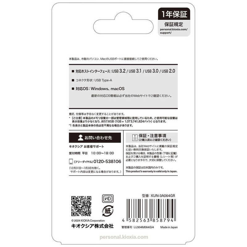 キオクシア KIOXIA USBフラュシュメモリー 64GB マゼンタ KUN-3A064GR