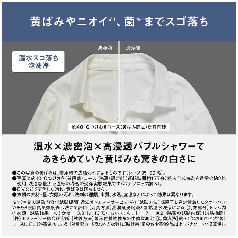 ●標準使用水量:洗濯時/83L、洗濯~乾燥/55L