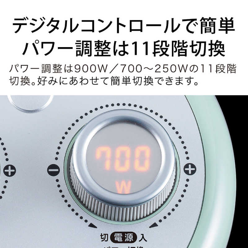 ●細やかなW数切替 最大900W 700W~最小250Wまで50Wずつ設定できる省エネ設計
