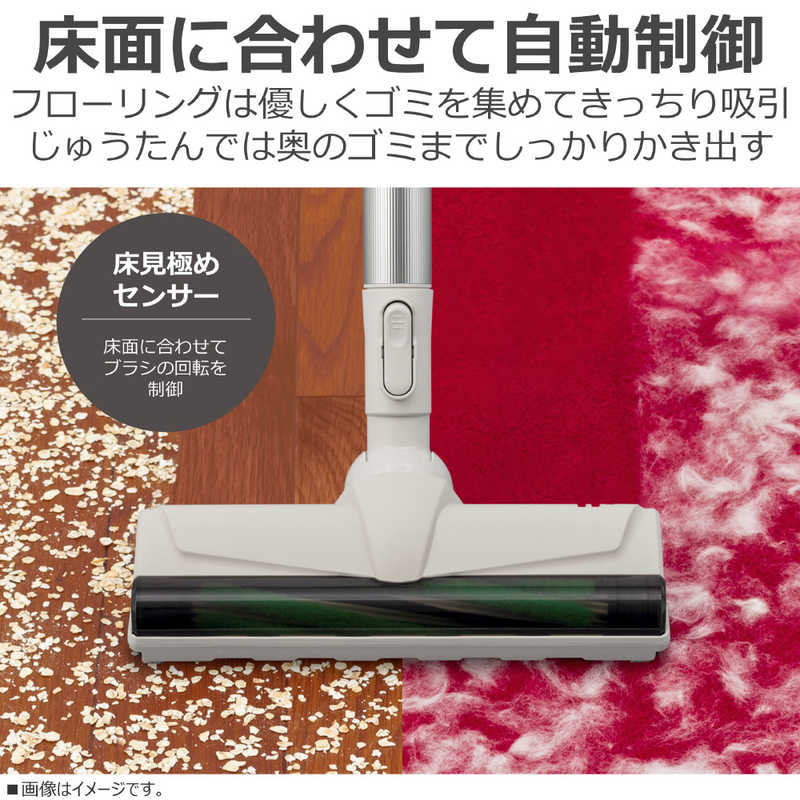 ●床面に合わせてブラシ回転を最適制御 「床見極めセンサー」 じゅうたんの奥のゴミも、フローリングの粒ゴミも、しっかりお掃除。