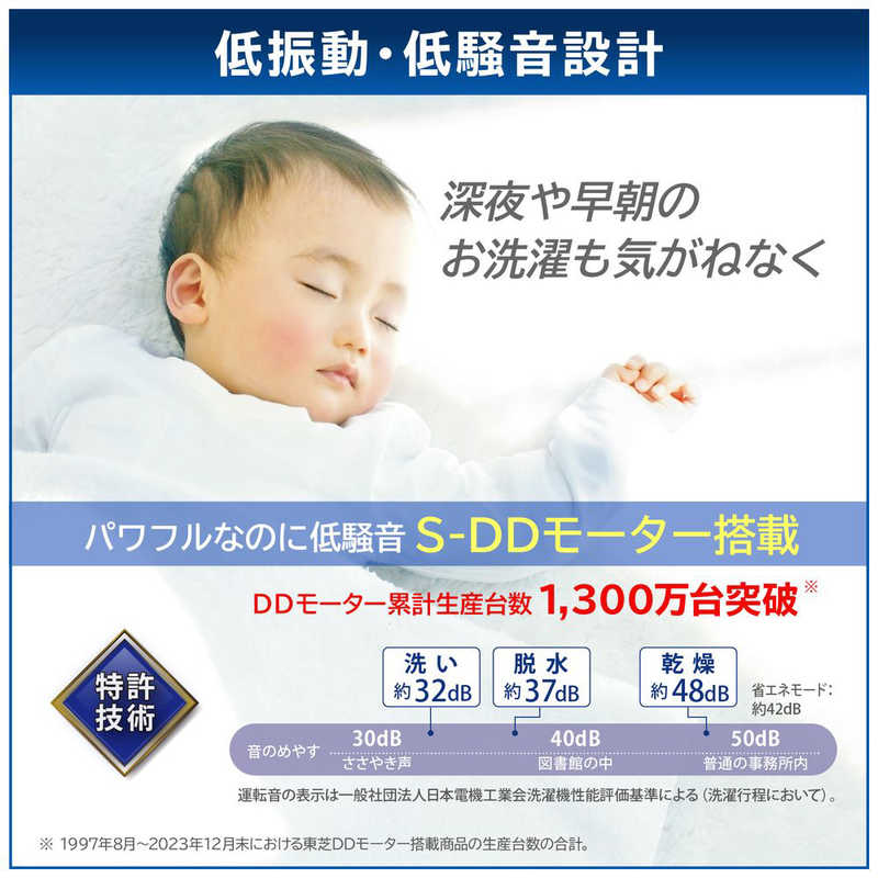 ●運転音:洗濯/32dB、脱水/37dB、乾燥/48dB
