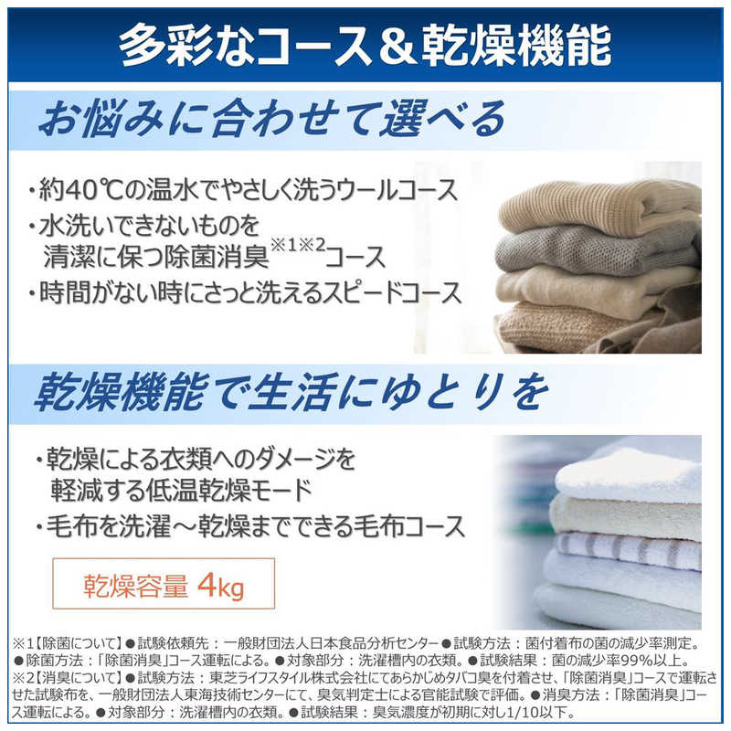 ●標準使用水量:洗濯時/78L、洗濯~乾燥時/90L