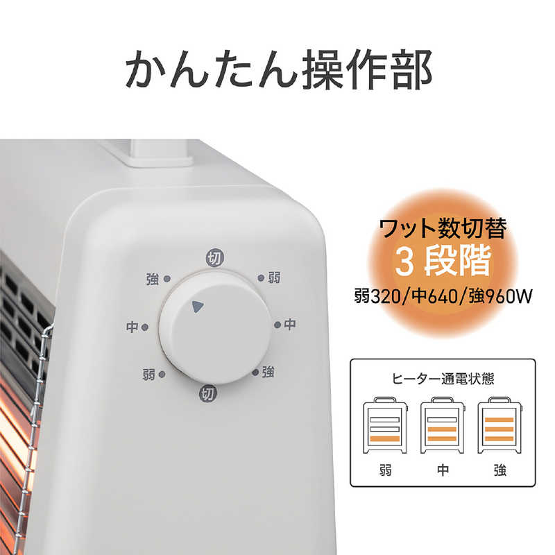 ●コンパクトでも電力切替3段階できる 320W/640W/960Wの3段階切替で、320Wで使えば電気代も抑えられる