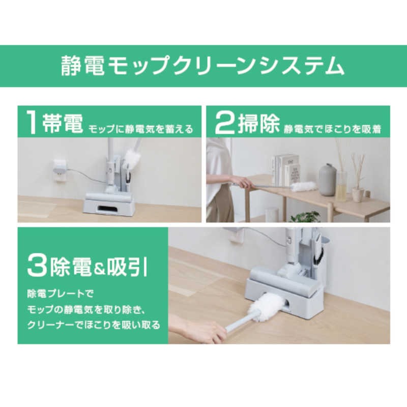 ●アイリスオーヤマ独自技術「静電モップクリーンシステム搭載」