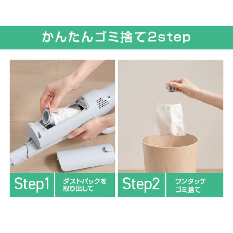 ●抗菌・防臭加工の不織布製ダストパックで手を汚さずにごみ捨てができます。