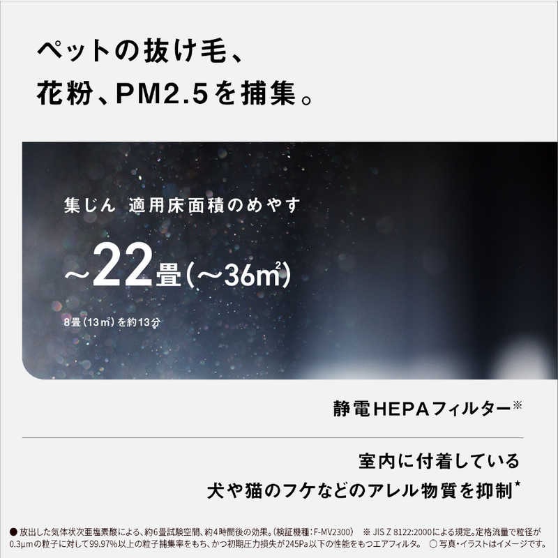 ・コンパクトサイズながら大型フィルターを搭載にし、22畳までのお部屋の集じんにも対応