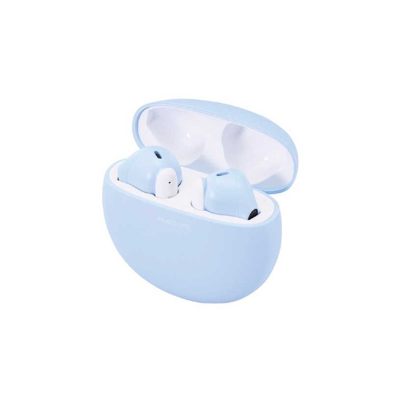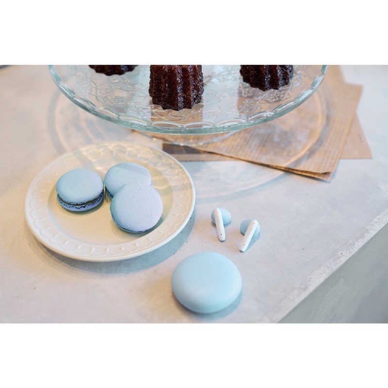 ●充電ケースはマカロンのようなまるくてコロンとした形がポイントです。ファッションのワンポイントにもなる、やわらかながら存在感のある「ピンク」「ブルー」「グリーン」「イエロー」をラインアップしています。