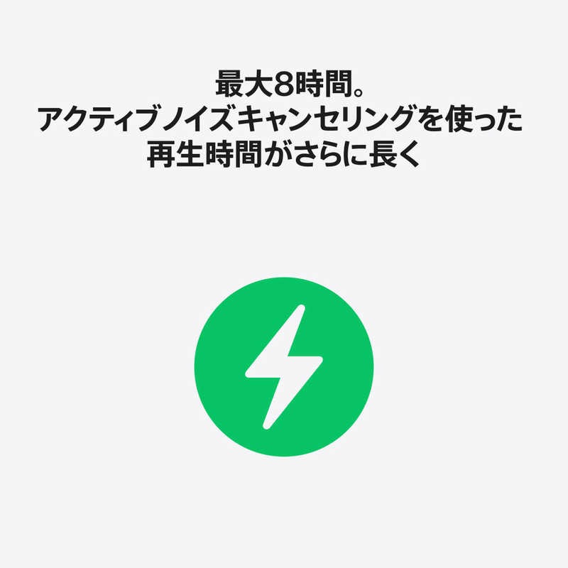 ●音楽再生時間:最大8時間(アクティブノイズキャンセリングを有効にした場合)最大10時間(外部音取り込みモードでヒアリング補助機能を使用した場合)