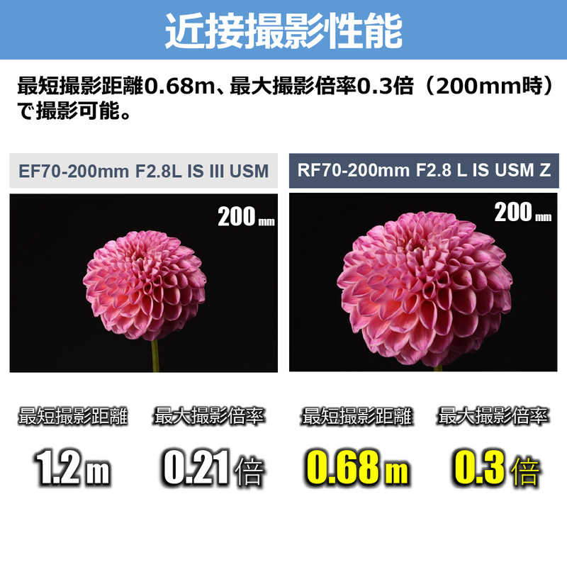 ●最大撮影倍率:0.2倍(70mm)、0.3倍(200mm時)