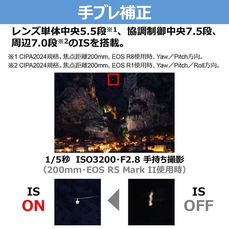 (※1)CIPA2024規格。焦点距離200mm、EOS R8使用時、Yaw/Pitch方向。