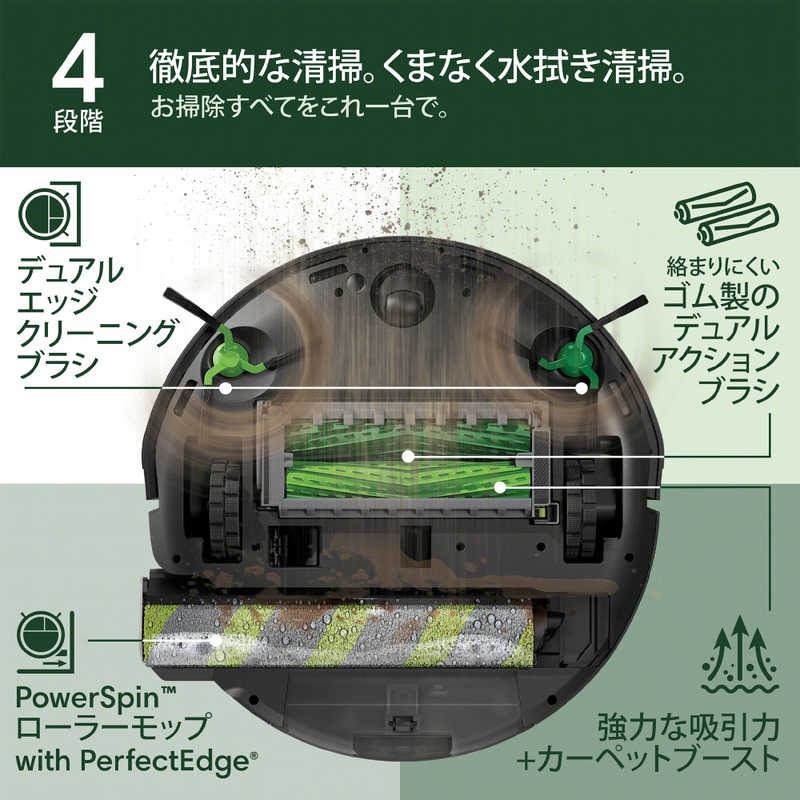 ●セット内容:ロボット本体、バッテリー(内蔵)、AutoWash 充電ステーション(紙パック装着済み+交換用紙パック×1)、電源コード、交換用デュアルエッジクリーニングブラシ×1セット、交換用フィルター×1、洗剤サンプル(30ml)、お手入れツール