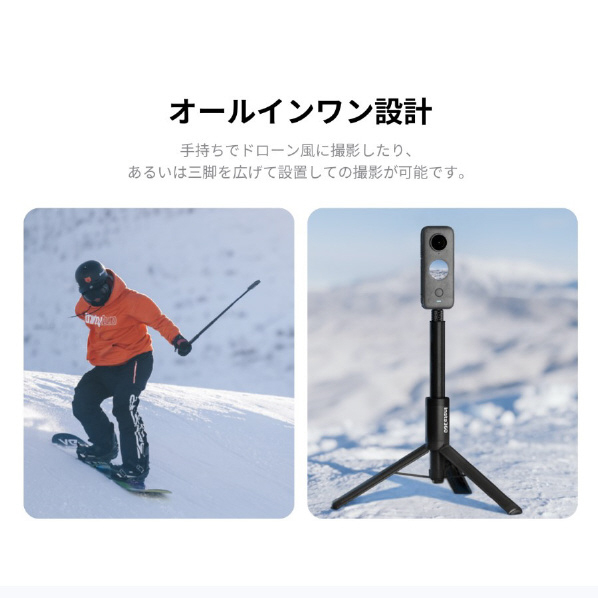 ●デュアルユース:自撮り棒での手持ち撮影や、三脚での撮影が可能。