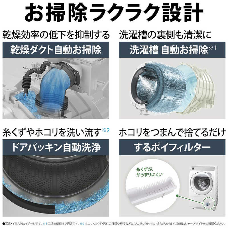 ヒーターセンサー乾燥で衣類を傷めずにふんわり仕上げる。