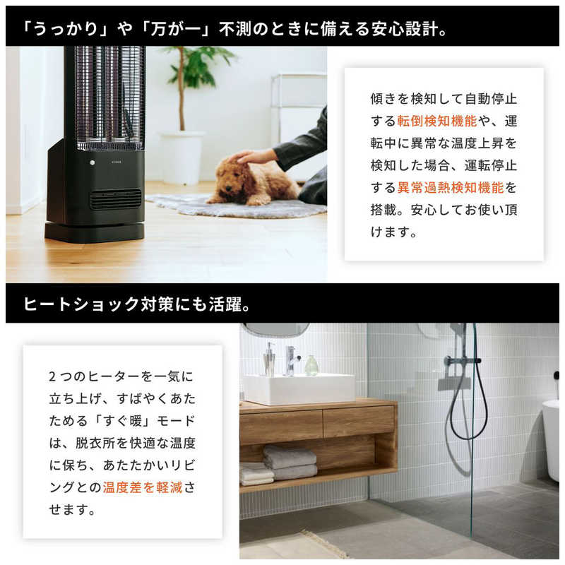 ■タイプ:ハロゲンヒーター ■機能:遠赤外線、速暖性、自動OFF ■カラー:ブラック