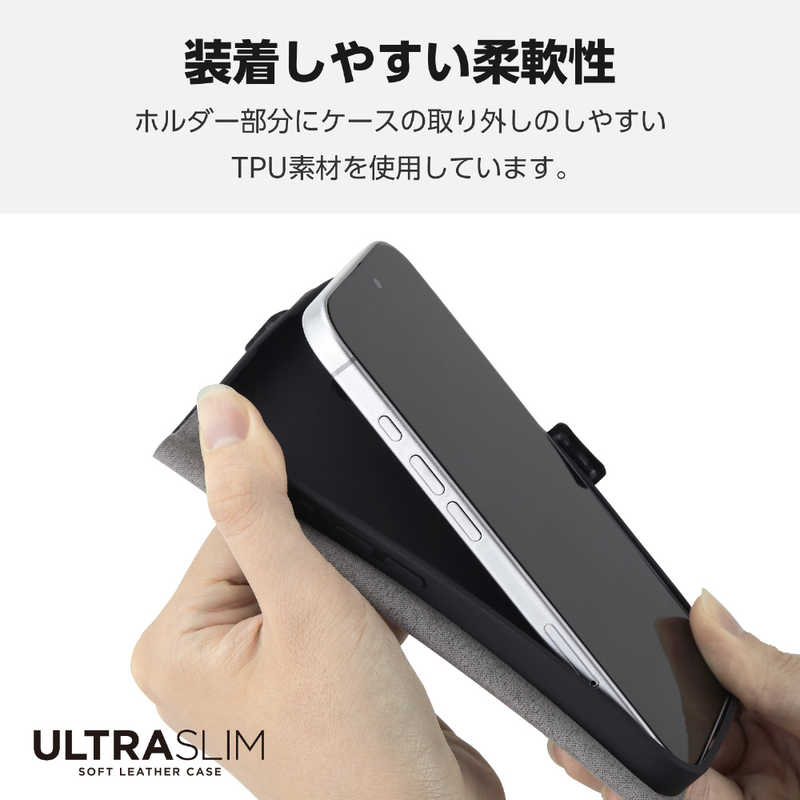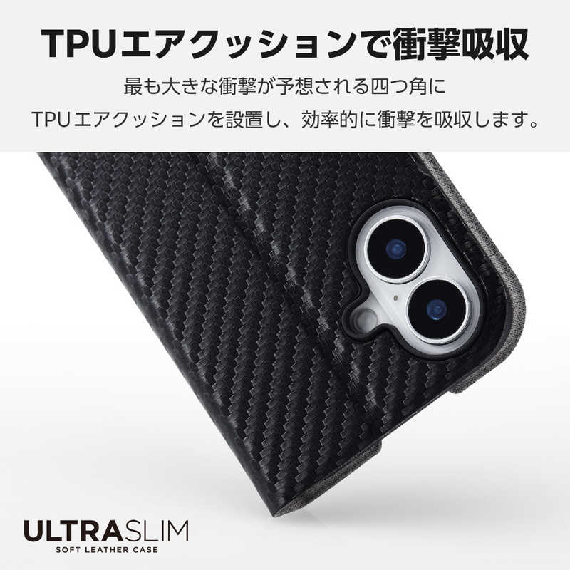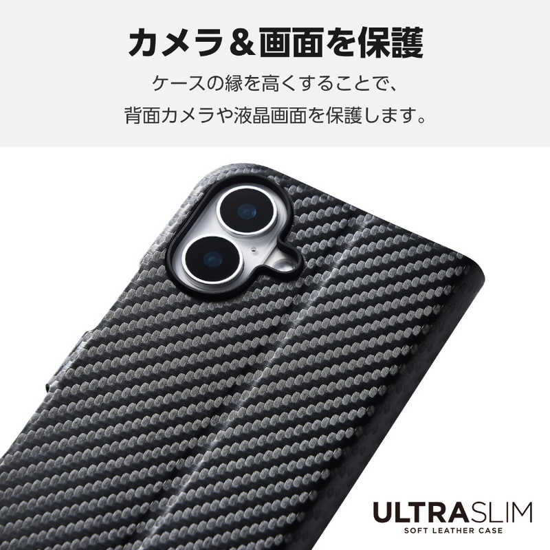 エレコム ELECOM iPhone 16(6.1インチ)ソフトレザーケース 薄型 磁石付 カーボンブラック PMA24APLFUCB