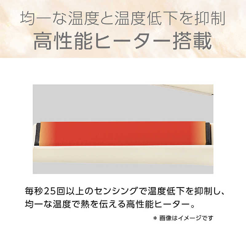 ●水分蒸発を抑えるシルキーモイスト加工、上下の動き+左右の傾きが変化し髪にフィットする3D密着プレート静電気を中和し、滑らかな髪へ導く「イオンバランステクノロジー」
