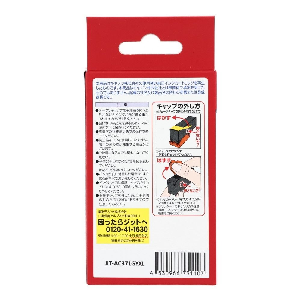ジット JIT リサイクルインクカートリッジ キヤノン用 BCI-371XLGY互換 グレー 大容量 JIT-AC371GYXL