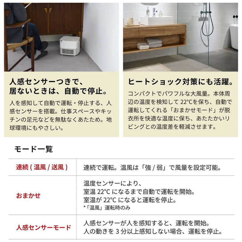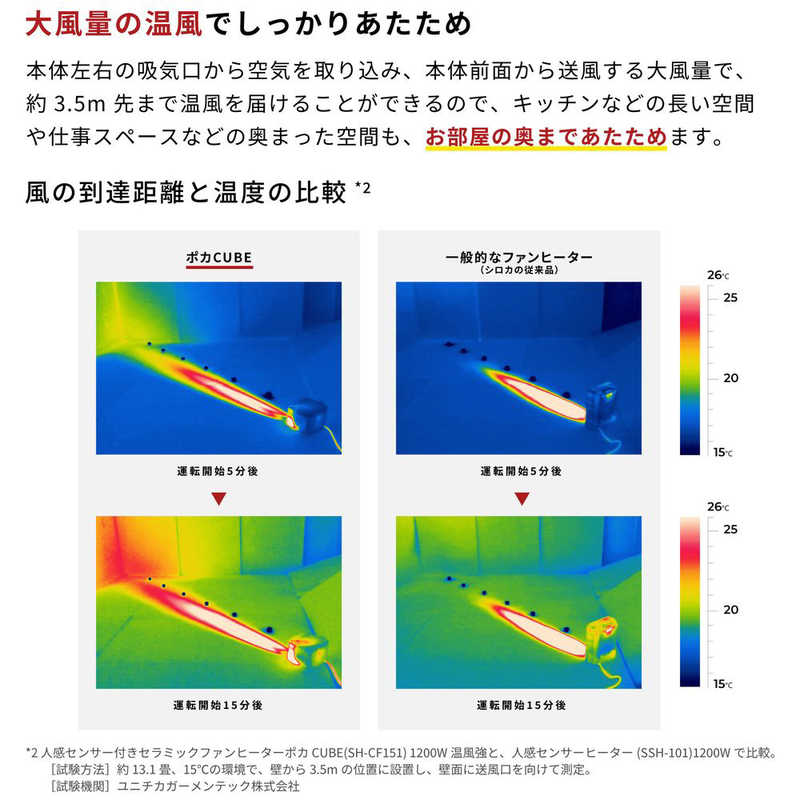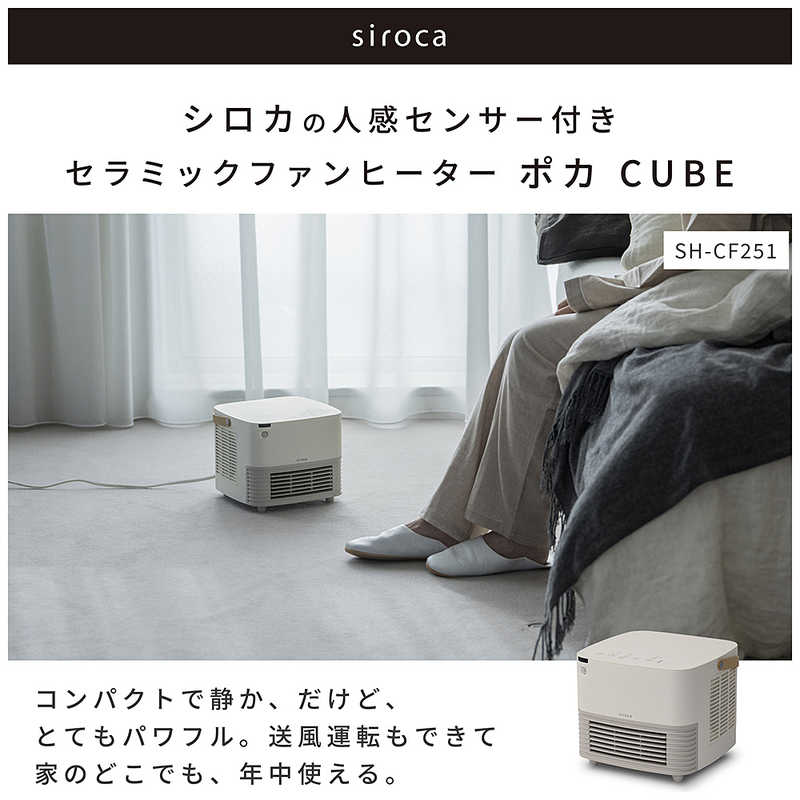 シロカ siroca 人感センサー付き セラミックファンヒーター ポカCUBE ホワイト SH-CF251-W