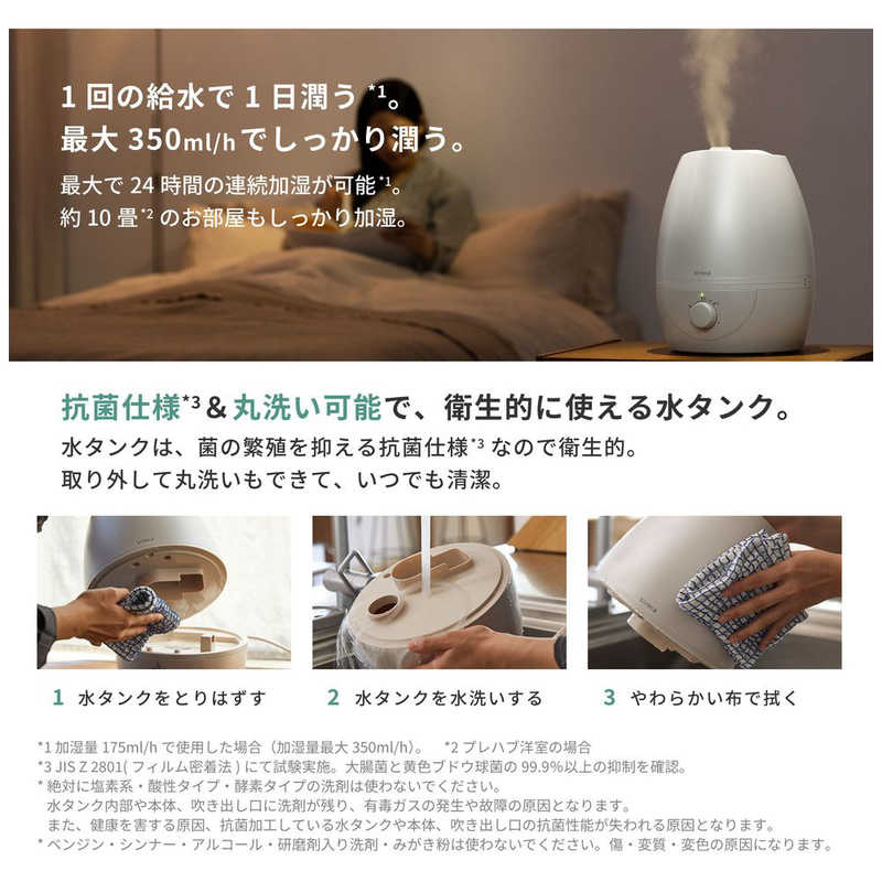さらに、水タンクは取り外して丸洗いができるため、いつでも清潔なミストでお部屋をうるおします。