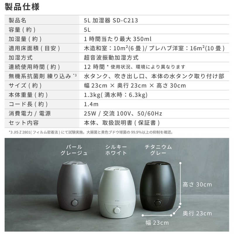 SIROCA 加湿器 超音波式 木造6畳 鉄筋10畳 パールグレージュ SD-C213CH