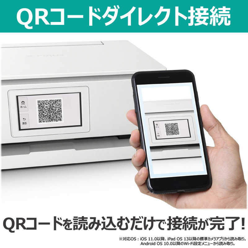 プリンターの液晶画面にダイレクト接続用のQRコードを表示。読み込むだけで、SSIDやパスワードを入力することなく接続設定が完了します。