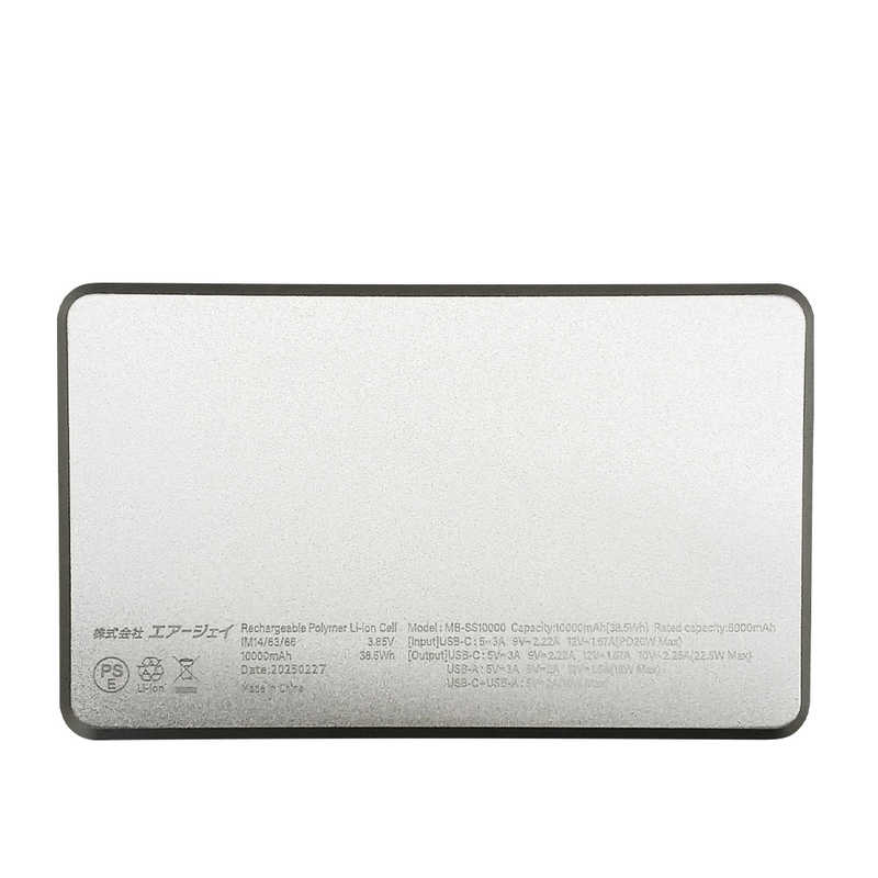 エアージェイ AIR-J モバイルバッテリー 10000mAh 準固体リチウムイオン ホワイト MB-SS10000 WH
